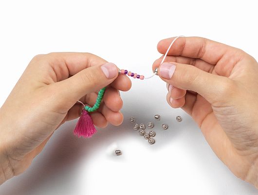 Két könnyen elsajátítható technikával akár 16 színes, divatos karkötő készíthető tele gyöngyökkel, medálokkal.