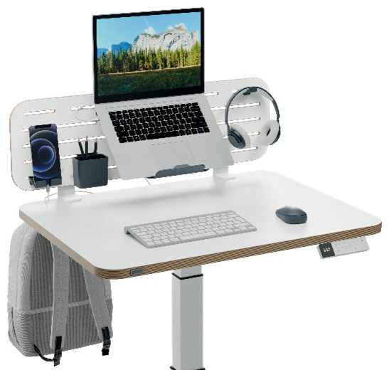 LEITZ Ergo függőleges íróasztal-szervezők tökéletes kiegészítői az ülő-álló asztaloknak, és az újrahasznosított műanyagból készült kiegészítőkkel együtt helytakarékos, személyre szabott tárolási megoldást biztosítanak a laptopok, notebookok, telefonok és egyéb eszközök számára. A kisméretű függőleges rendszerező pegboard az íróasztal tetejére szerelhető vagy az asztalra akasztható a rendelkezésre álló hely maximális kihasználása érdekében, a nagyobb rendszerező pedig laptopállványként is funkcionál.