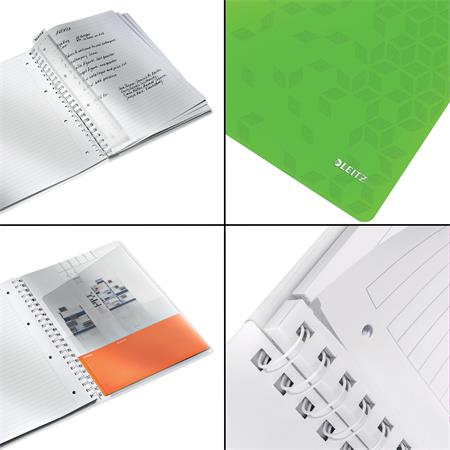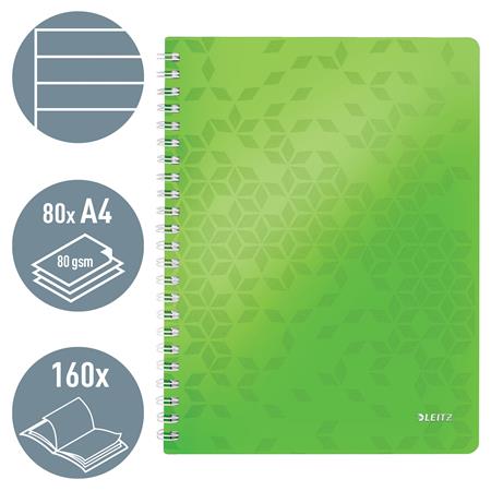 Spirálfüzet, A4, vonalas, 80 lap, LEITZ "Wow", zöld