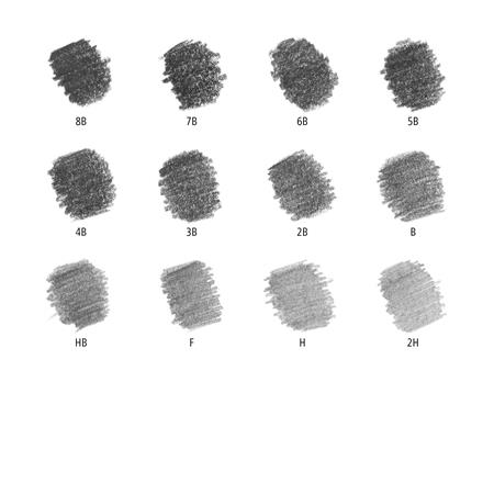 - a doboz tartalma: 12 db puha grafitceruza: 8B, 7B, 6B, 5B, 4B, 3B, 2B, B, HB, F, H, 2H