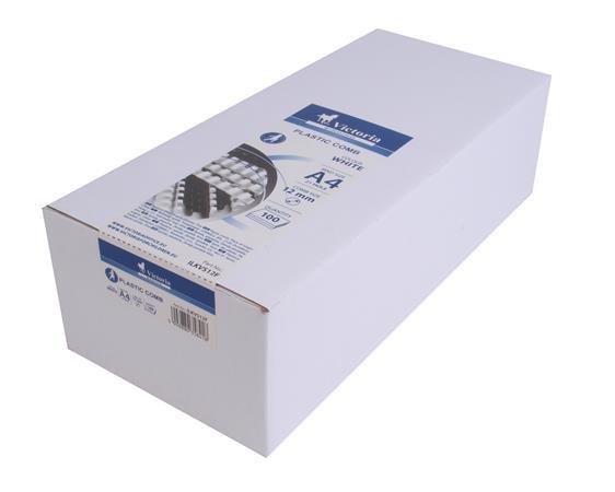Spirál, műanyag, 12 mm, 56-80 lap, VICTORIA OFFICE, fehérAlapítvány támogatás 3 Ft
